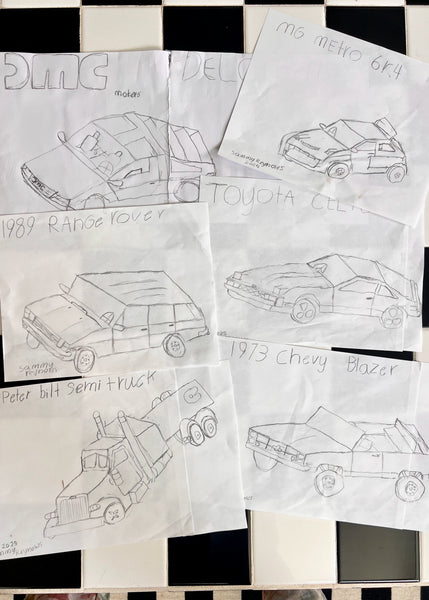 FREEHAND SKETCHES OF THE FOLLOWING VEHICLES:
